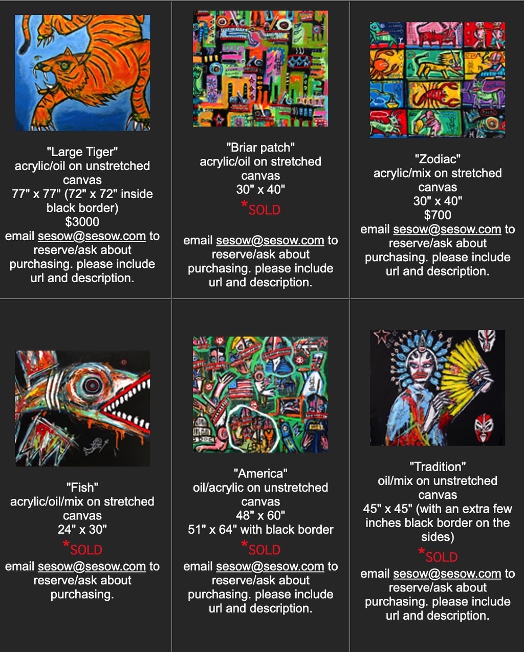 Matt Sesow posts new paintings on his website at NEW.SESOW.COM almost daily. Contact Matt directly to purchase the paintings and have the work shipped anywhere in the world.